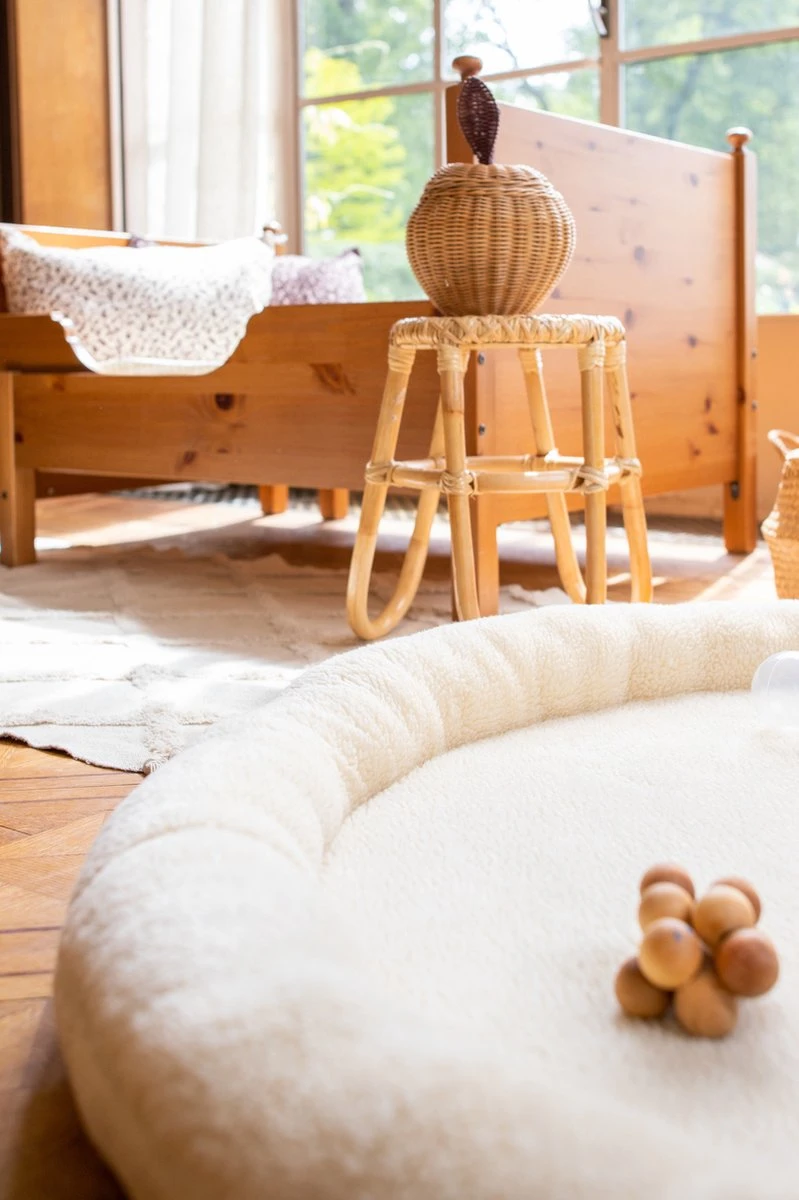 Zacht speelnest van het merk Moje is gemaakt van fluffy teddystof. Deze warme trendy past mooi in het meest stijlvolle interieur.